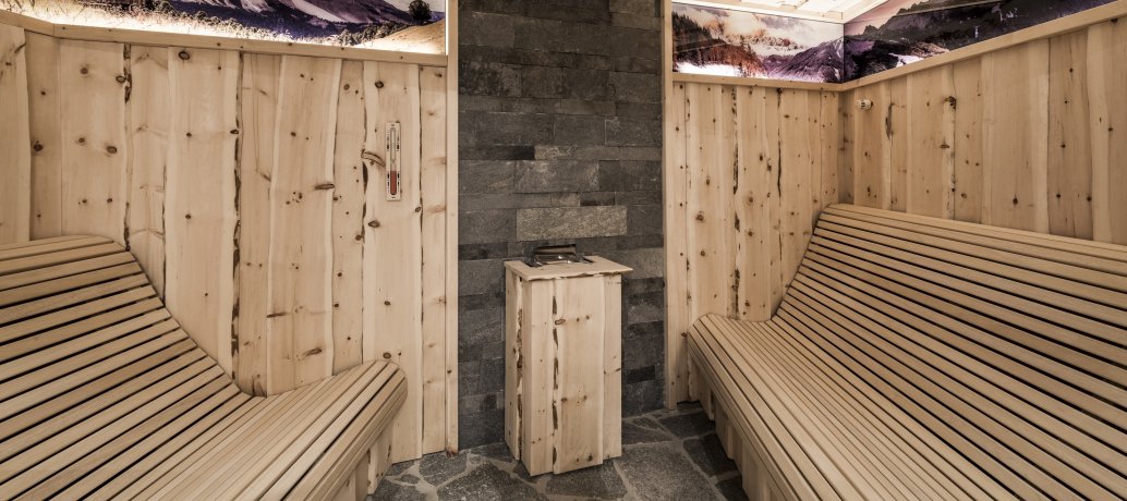 Zum Relaxen erwarten eine finnische Panoramasauna, eine Kräuter- Biosauna, ein türkisches Dampfbad, ein mit duftendem Holz und liebevollen Details eingerichteter Entspannungsraum mit Heubetten, Wasserbetten, Ruhenischen und ein Outdoor Whirlpool, mit malerischem Blick zu den Aferer Geislern.
